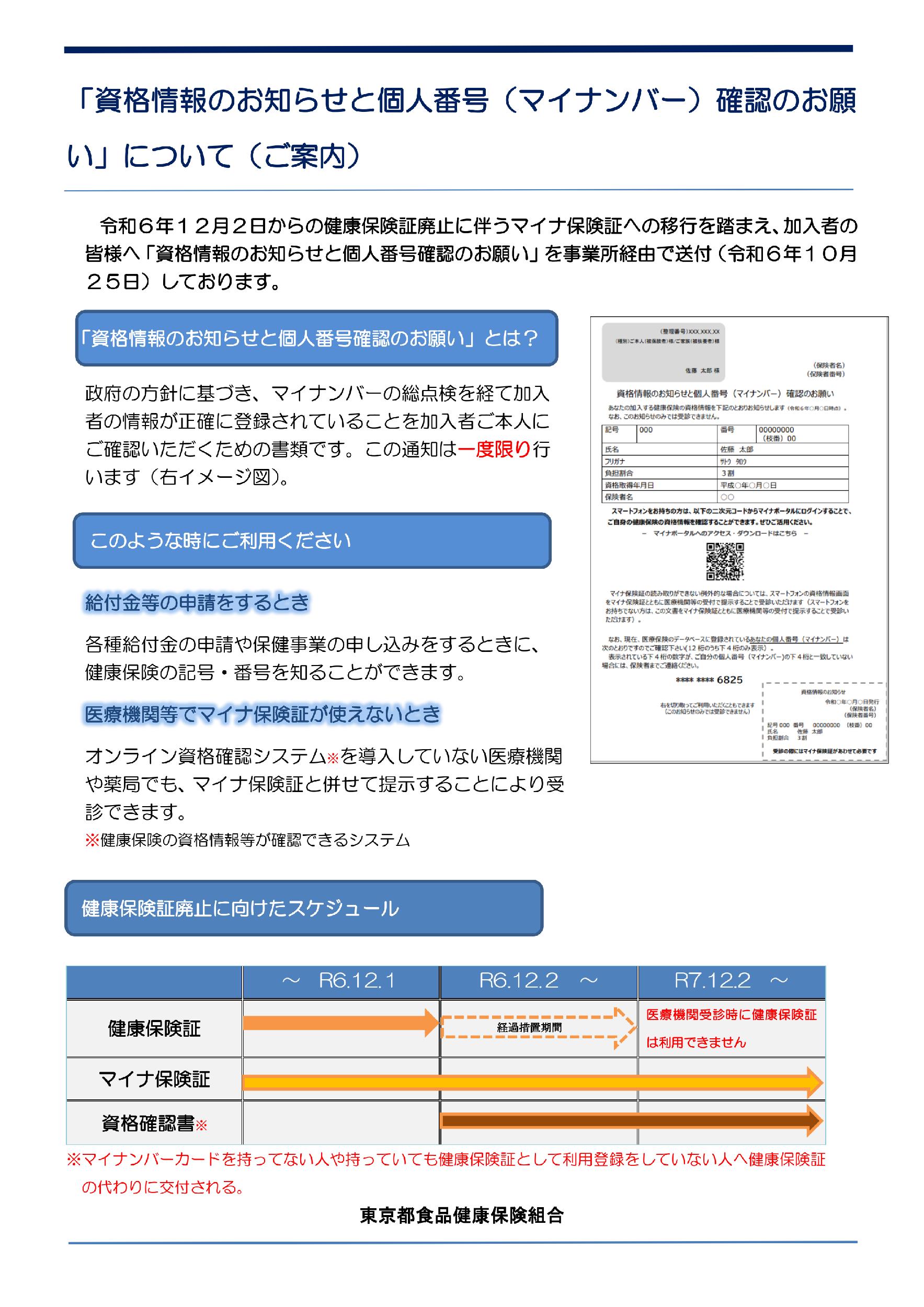 「資格情報のお知らせと個人番号(マイナンバー)確認のお願い」について(ご案内)
