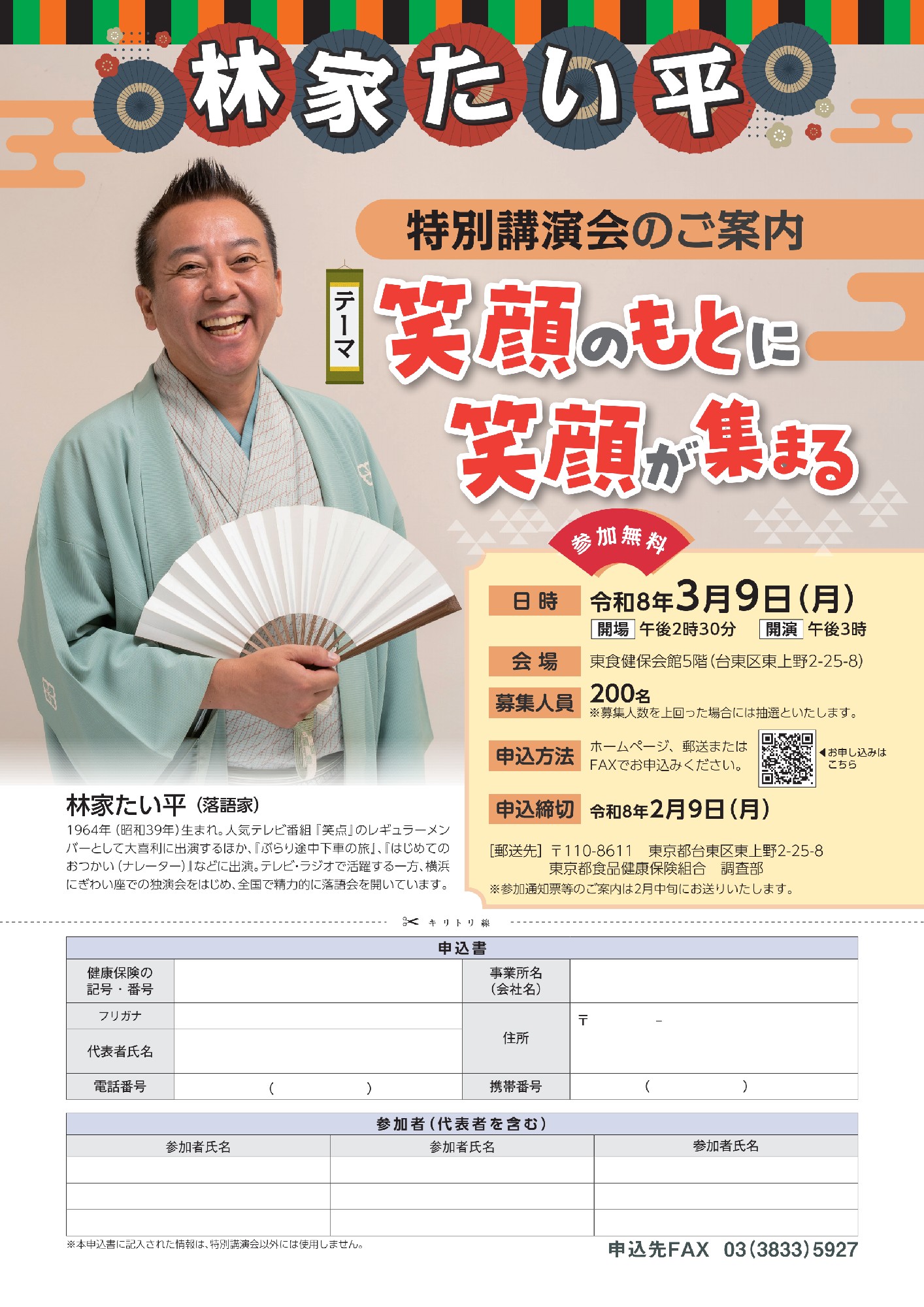「 特別講演会 ( 林家たい平氏 ) 」を開催いたします!