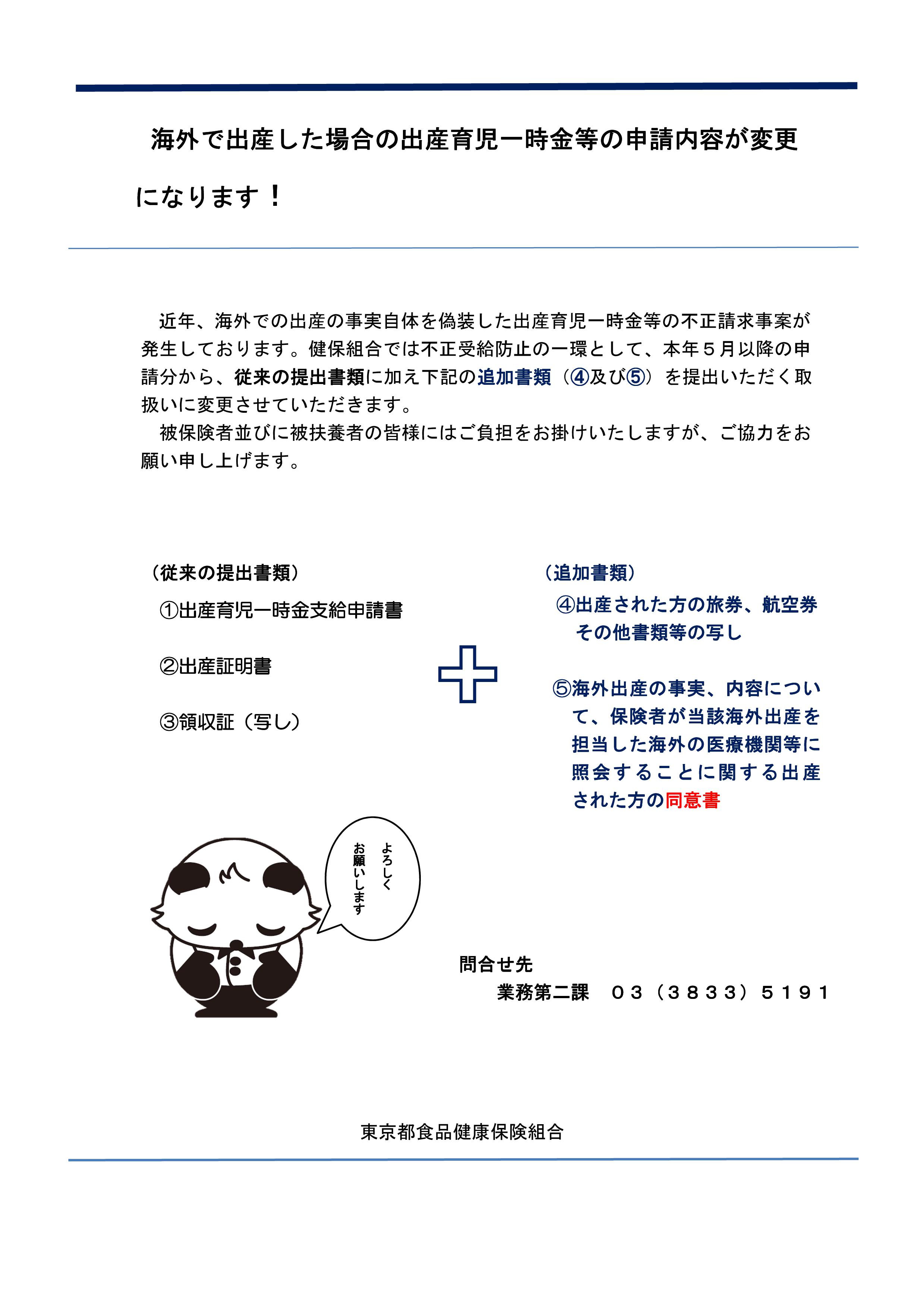 海外で出産した場合の出産育児一時金等の申請内容が変更になります!