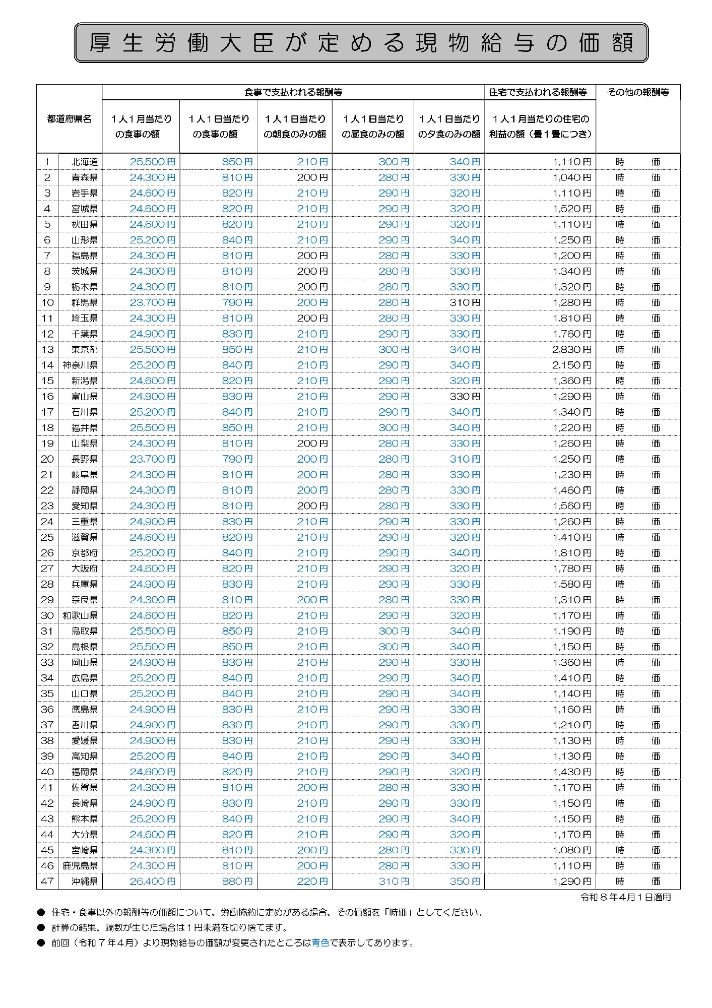 過日、厚生労働省から現物給与の価額の一部を改正する件(令和8年厚生