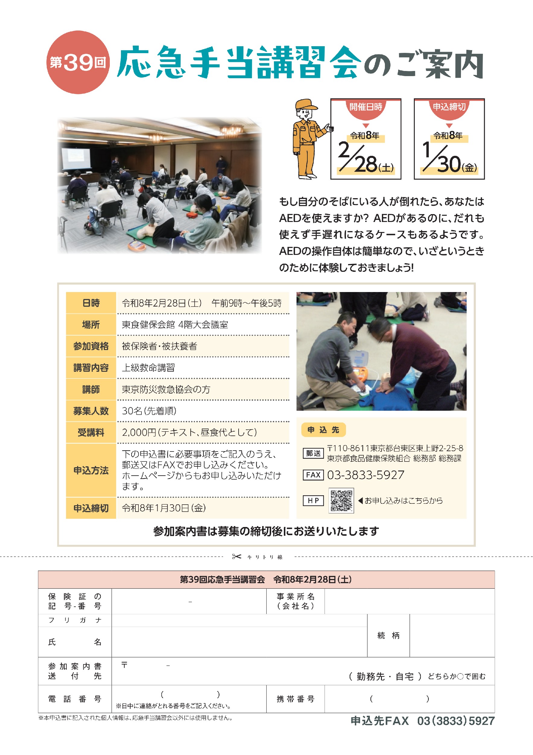 > 第39回 応急手当講習会を開催いたします!