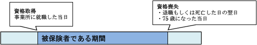 被保険者として加入することを「資格取得」、被保険者でなくなることを「資格喪失」といいます。被保険者の資格は一般的には就職した当日に取得し、退職もしくは死亡した日の翌日、75歳になった当日に喪失します。